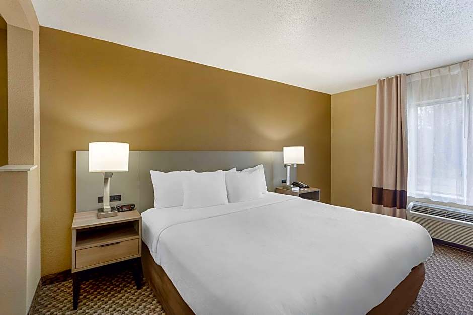 Room options span practical and comfy configurations: Efficiency Suite with Kitchen sleeps 2 in a King bed and includes a kitchen; Efficiency Suite with Sofa Bed adds a sofa bed for extra flexibility; Suite, King offers a king bed in a spacious setup that can accommodate up to eight adults and five children; and Room - 2 Queen, a non-smoking layout with two queen beds for families.